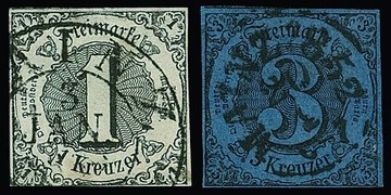 "Mainz", K1 bzw. K2 (zwei versch. Typen) auf neun Werten 1. Ausgabe in untersch. Erhaltung (zwei Paare 9 Kr. Mgl.), alles Frühdaten aus Januar 1852 ab 3. (!) bis 31.1.