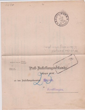 "Kleinengstingen", Wander-Ra2 (Form II) auf unfrankierter Zustellurkunde 1896