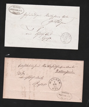 "Cannstatt", neun Briefe mit vorphil. Stempeln (teils Hüllen), dabei zweimal der seltene erste L1 "DE CANSTATT" (einmal "nachgezogen"), dreimal Neben-L1 "Nach Abg. der Post" (blau und schwarz), sowie die versch. Stempeltypen