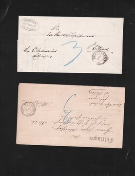 "Entringen", L1 bzw. Postablage-Ovalstpl. auf zwei Dienstbriefen 1865/68