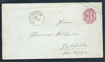 "Fellbach", sehr klarer kleiner K1 auf Luxus-Ganzsachencouvert 3 Kr. karmin