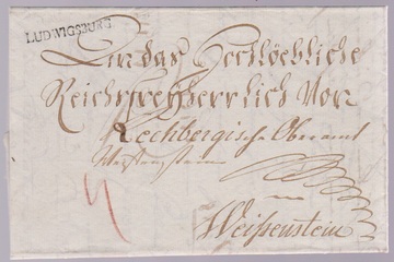 "Ludwigsburg", 1788, klarer L1 auf Luxusbrief nach Weißenstein, Feuser 2109-3