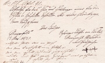 "Mayenfeld", 1831, hs. Botenlohnquittung über 4 Kr. (vom Boten mit "XXX" quittiert)