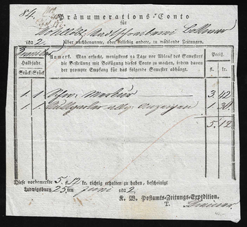 "Ludwigsburg", 1816-1822, sieben Post-Zeitungsscheine (versch. Vordrucke)