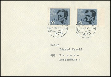 20 Pfg. von Stauffenberg aus Widerstandskämpferblock per zwei als gute MeF auf Doppelbrief von Aschaffenburg nach Passau