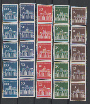 Brandenburger Tor in postfrischen Rollen-Fünferstreifen, Mi. 257,-