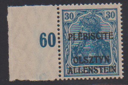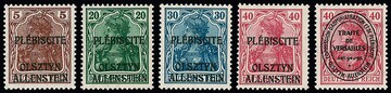 1 Mk. a. 2 Pfg. mit zwei Aufdruckfehlern, "Marienwerder links unten abgeschrägt" und "linke 1 mit fehlendem Anstrich", gest. Mi. 350,-