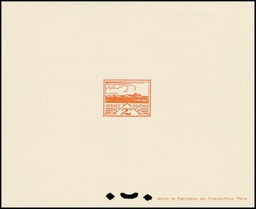 2 P. dunkelorange, sog. "Luxusdruck" als Einzelabzug der Französischen Staatsdruckerei im Format 144:109mm, geschnitten, mit Deckblatt, im Michel nicht gelistet, lt. Literatur nur in einer Auflage von 100 Exemplaren hergestellt, von denen nur noch ein geringer Teil existieren dürfte. Literatur-Kopie anbei