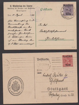 10 Pfg. als EF auf Ortskarte aus Stuttgart, sowie 15 Pfg. als EF auf Fernpostkarte, je sign. Infla, gute EF!