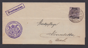Ausgabe für Württemberg, zwei Einzelfrankaturen: 10 Pfg. auf Streifband, sowie 15 Pfg. auf Drucksache