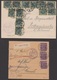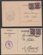 10 Pfg. je per vier als MeF auf zwei Briefen, u.a. einmal seltener Plattenfehler II (alleine Mi. 300,-), ferner 15 Pfg. je im Paar auf zwei Karten von Hall (Orts- und Fernkarte), sowie per vier auf Fernbrief