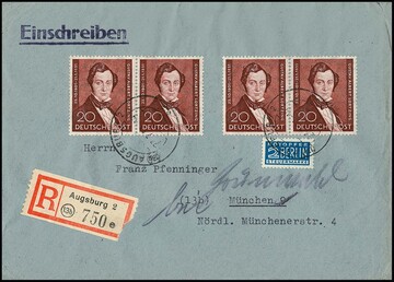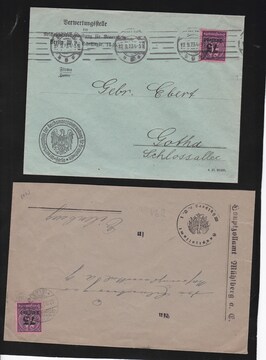 75 T. a. 50 Mk., zwei bessere Einzelfrankaturen auf Briefen aus Berlin bzw. Grossberg, bei letzterem Marke kurios erst am Empfangsort entwertet. Sign. Weinbuch bzw. Fleiner. Mi. 400,-