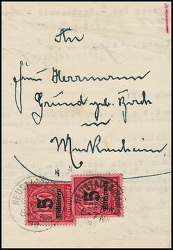 40 Mk. Schlangenaufdruck, zwei versch. portoger. EF: auf Ortsbrief aus München, sowie auf Postkarte ab Regensburg, Mi. 240,-