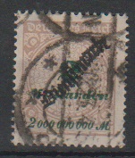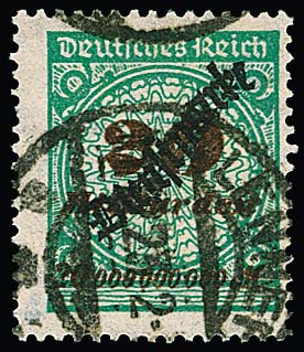 20 Milld. Mk. mit Plattenfehler "Sprung in der Rosette" gestempelt, ein stumpfes Zähnchen, Fotoexp. Bauer. Mi. 800,-