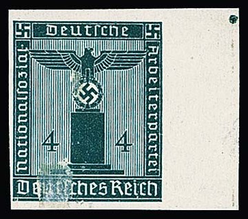 4 Pfg. Parteidienstmarke in der seltenen ungezähnten Variante als ungebrauchtes rechtes Randstück (vs. Anhaftungen), Mi. 1300,-