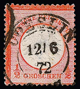 1 Gr. rosa mit zentrischem K1 "Frankfurt a.M." vom 3.1.1872. Ungewöhnlich sehr frühe Verwendung einer Groschen-Marke im Kreuzergebiet! Fotoexp. Sommer