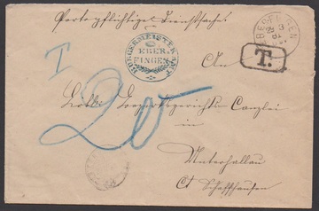 10 u. 20 Pfge. rs. auf Wertbrief von Cosel nach Bielschowitz im Landbezirk von Antonienhütte, dort Empfänger vom Landbriefträger nicht zu ermitteln und retour, wofür der Absender nochmals 30 Pfg. zu bezahlen hatte, übliche Gebrauchserhaltung