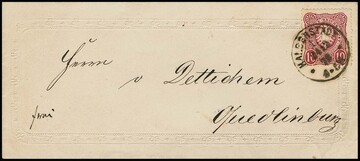 10 Pfge. rosa auf besonders opulent geprägtem Zierbrief aus Leipzig