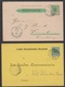 Sieben Belege mit Ganzsachen-Ausschnitten Krone-Adler (und ein weiterer mit geschnittener Marke), u.a. zweimal in die Schweiz mit Schweizer Nachportomarken, ohne Nachtaxen etc.
