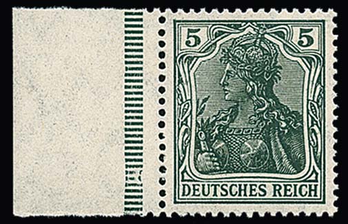 5 Pfg. schwarzopalgrün als postfrisches Randstück, sign. Zenker. Mi. 500,- +