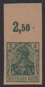 5 Pfg. schwarzopalgrün als postfrisches Plattendruck-Oberrandstück, sign. Zenker. Mi. 800,-