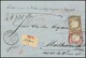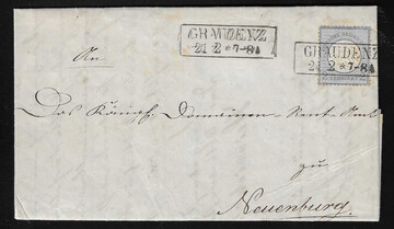 1 Gr. karmin und 2 Gr. blau auf Prachtbrief mit K1 "Masmünster" 1872 nach Frankreich, sowie 2 Gr. blau einzeln auf Doppelbrief aus Graudenz