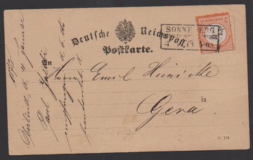 2 Kr. orange, Kabinettstück in rauher Zähnung mit Ra3 von Sonneberg auf Postkarte nach Gera, Mi. 400,-