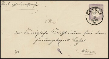 1/4 Gr. violett, üblich teils etwas unebene Zähnung, einzeln auf Ortscouvert mit K1 "Cassel", sign. Hennies, Droese. Mi. 700,-