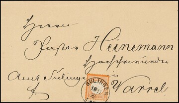 1/2 Gr. orange, sehr schön geprägt, auf Kabinettbrief mit K1 "Sulingen" in den eigenen Landbezirk nach Varrel