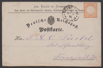 1/2 Gr. orange einzeln auf zwei Privat-Postkarten, einmal 1875 aus Mönchengladbach (ein kurzer Zahn), sowie kurios unentwertet nur mit Neben-HE "Duisburg" 1874, Marke zudem zwei versch. FZL, je Fotoexp. Krug