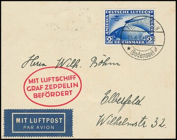 Landungsfahrt nach Münster 1930, Brief ab Friedrichshafen mit 2 RM SAF (Mi. 650,-), Sieger 50,-