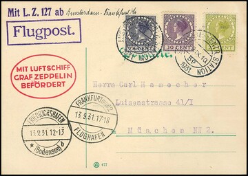 Fahrt Friedrichshafen-Frankfurt, 1931, Zuleitungspost Niederlande ab Amsterdam, leichte Gebrauchsspuren, Sieger 225,-