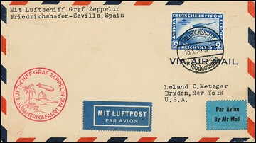 SAF 1930, Brief mit 2 RM SAF (Mi. 500,-), Auflieferung Friedrichshafen bis Sevilla