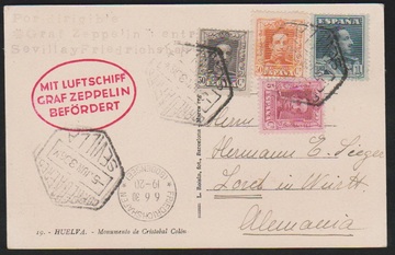 SAF 1930, Karte Spanien zur Heimfahrt Sevilla-Friedrichshafen