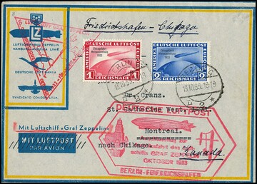 Chicagofahrt, Brief mit 1 und 2 RM Chicagofahrt, Auflieferung Berlin bis Chicago (Mi. schon 800,-)