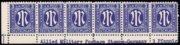3 Pfg. mit sog. Doppelbilddruck im Sechserstreifen aus der linken unteren Bogenecke, je drei Marken postfrisch und ungebraucht, sign. Becker. Mi. über 1200,-