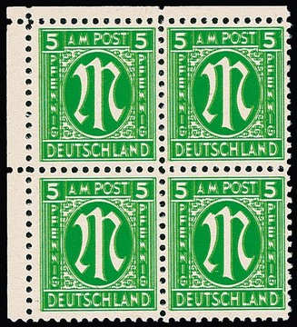 5 Pfg. im sog. "Doppelbilddruck" im Bogenecken-Viererblock, oberes Paar ungebraucht, unteres postfrisch, sign. Schlegel. Mi. über 600,-
