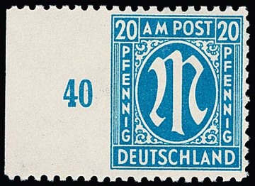 10 Pfg., Abart "rechts ungezähnt" vom rechten Bogenrand (leichte Gummitönung), sowie 20 Pfg. "links ungezähnt" vom linken Bogenrand