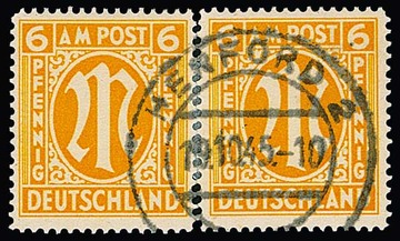 6 Pfg. in guter Mischzähnung im sauber rundgest. Paar, sign. Hettler. Mi. 300,- +