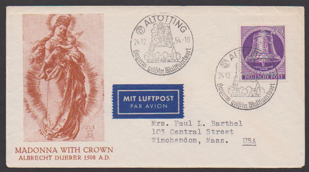 Gedächtniskirche auf Lupo-FDC (Couvert leichte Faltspur) in die USA. Mi. 400,-