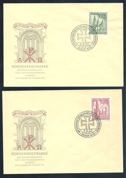 10 u. 20 Pfg. Gedächtniskirche je auf Schmuck-FDC, Mi. 300,-