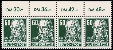 60 Pfg. schwarzgrün, Köpfe II, im postfrischen Oberrand-Viererblock, sign. Mayer. Mi. 360,-
