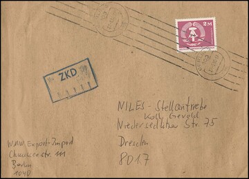 2 M. grosse Bauwerke als gute Einzelfrankatur im späten ZKD-Aufbrauch auf ZKD-Bedarfsbrief aus Berlin, 27.6.1990