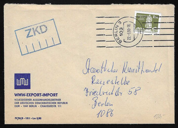 1 M. kleine Bauwerke als Einzelfrankatur im späten ZKD-Aufbrauch auf ZKD-Ortsbrief aus Berlin, 22.6.90