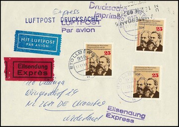 Jahrgang 1975, Slg. von 164 Belegen, ausschließlich portogerechte Einzel- (83) oder Mehrfach-Frankaturen (81), nur Sonder- und Zuschlagsausgaben, auch Block-MeF, dabei seltene hohe Wertstufen als ungewöhnliche MeF!
