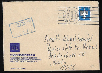 1 Mk. Flugpost auf ZKD-Aufbrauchs-Ortsbrief aus Berlin, 27.6.90