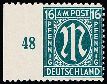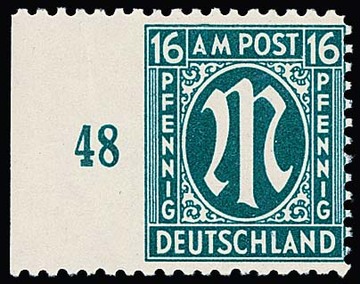 1 Mk. AM-Post postfrisch (Zähnung rechts herstellungsbedingt) mit rückseitig sehr markantem Vollabklatsch, Fotoexp. Wehner