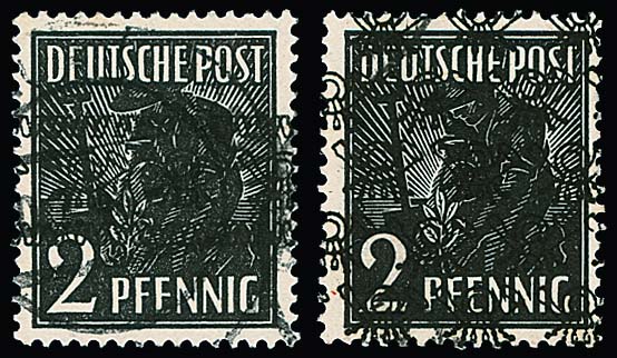 2 Pfg. Band- und Netzaufdruck, bessere Farbe schwarz gest., je Fotoexp. Bernhöft. Mi. 400,-