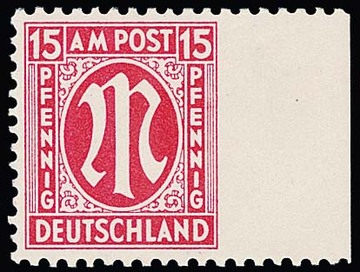 15 Pfg., Abart "rechts ungezähnt" als postfrisches rechtes Randstück, sign. Schlegel (fälschlich als die etwas billigere A-Zähnung, es handelt sich aber um die B-Zähnung). Mi. 350,-