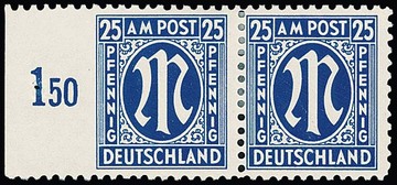 25 Pfg., Abart "links ungezähnt", als ungebrauchtes linkes Randpaar